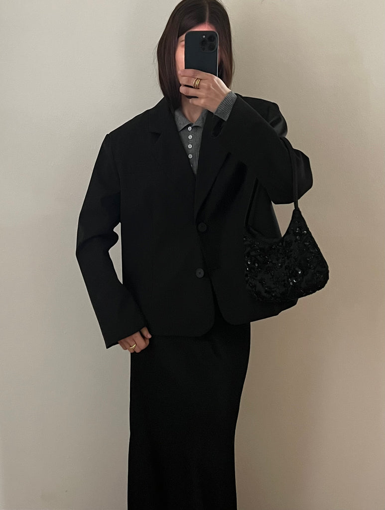Blazer corto leggermente oversize.