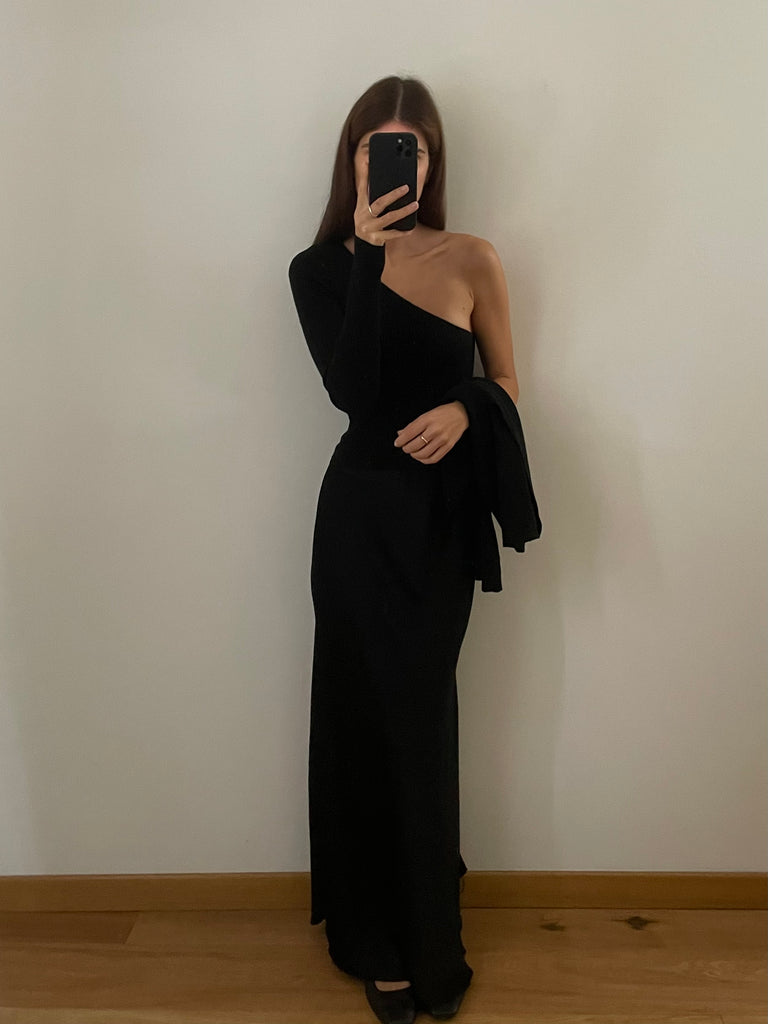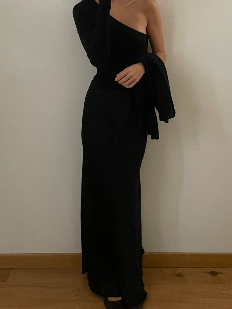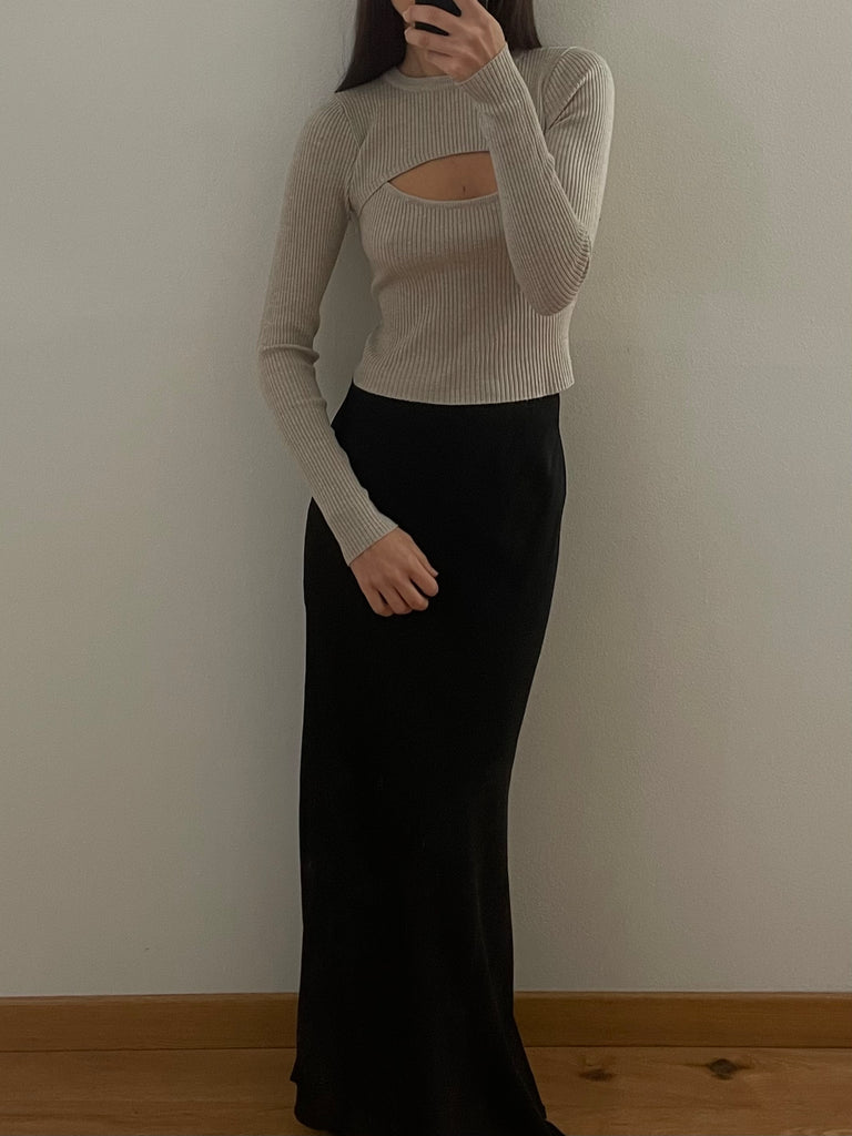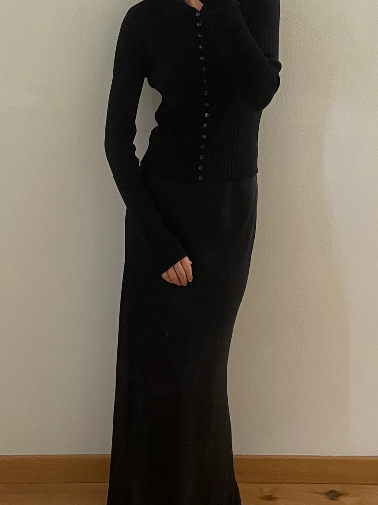 Gonna lunga modello scivolato in satin, con elastico (invisibile in vita)