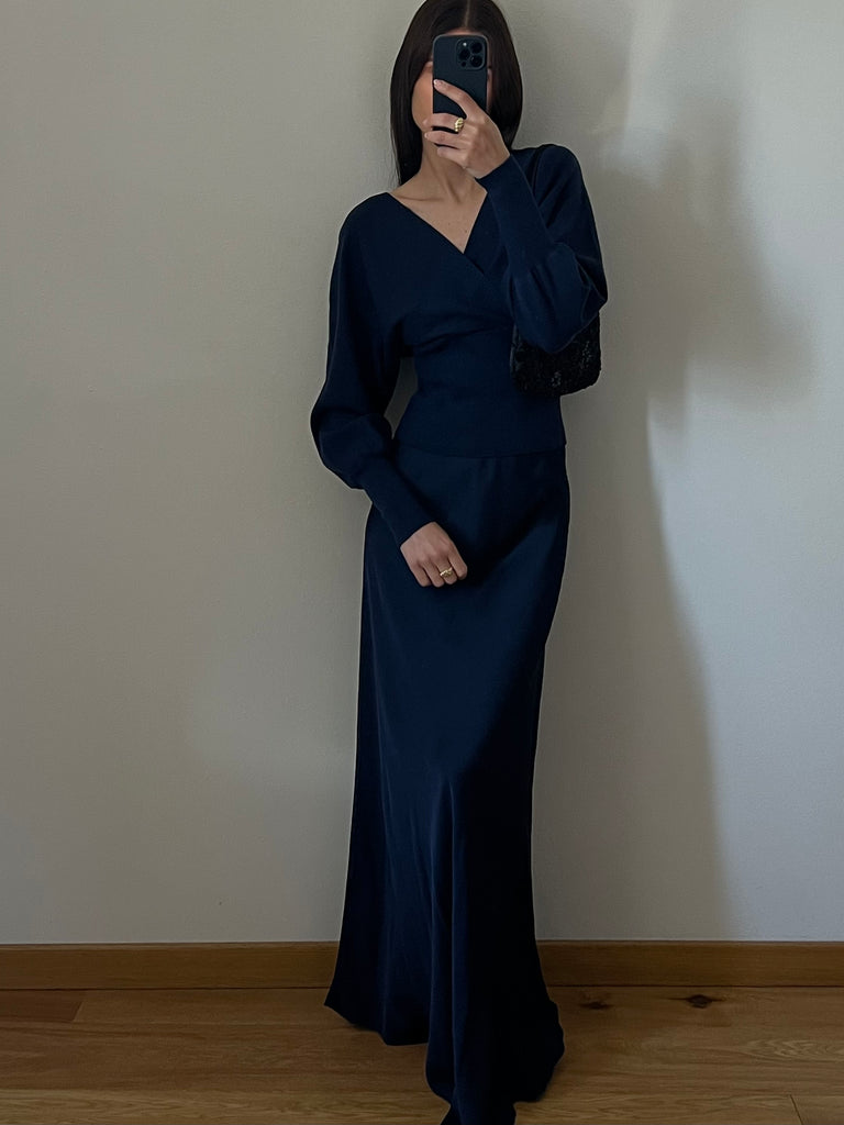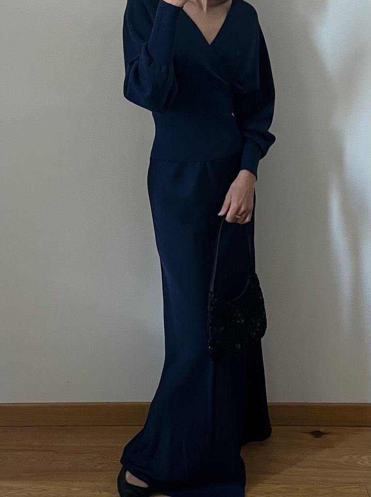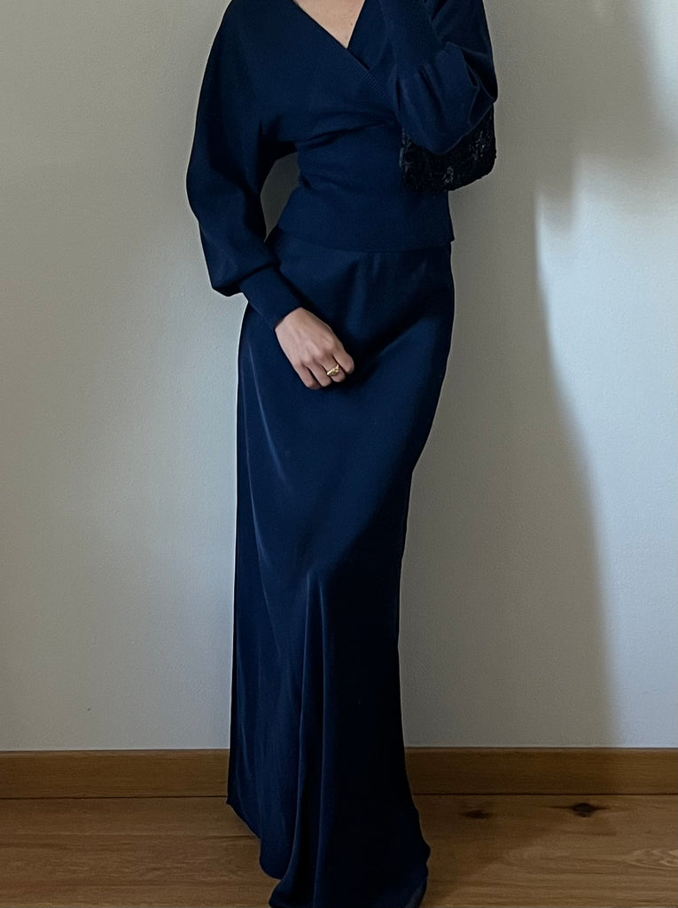 Gonna lunga modello scivolato in satin, con elastico (invisibile in vita)