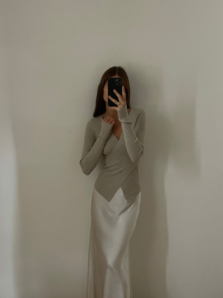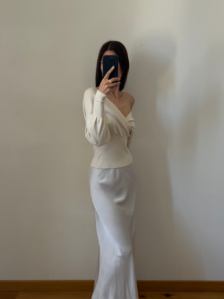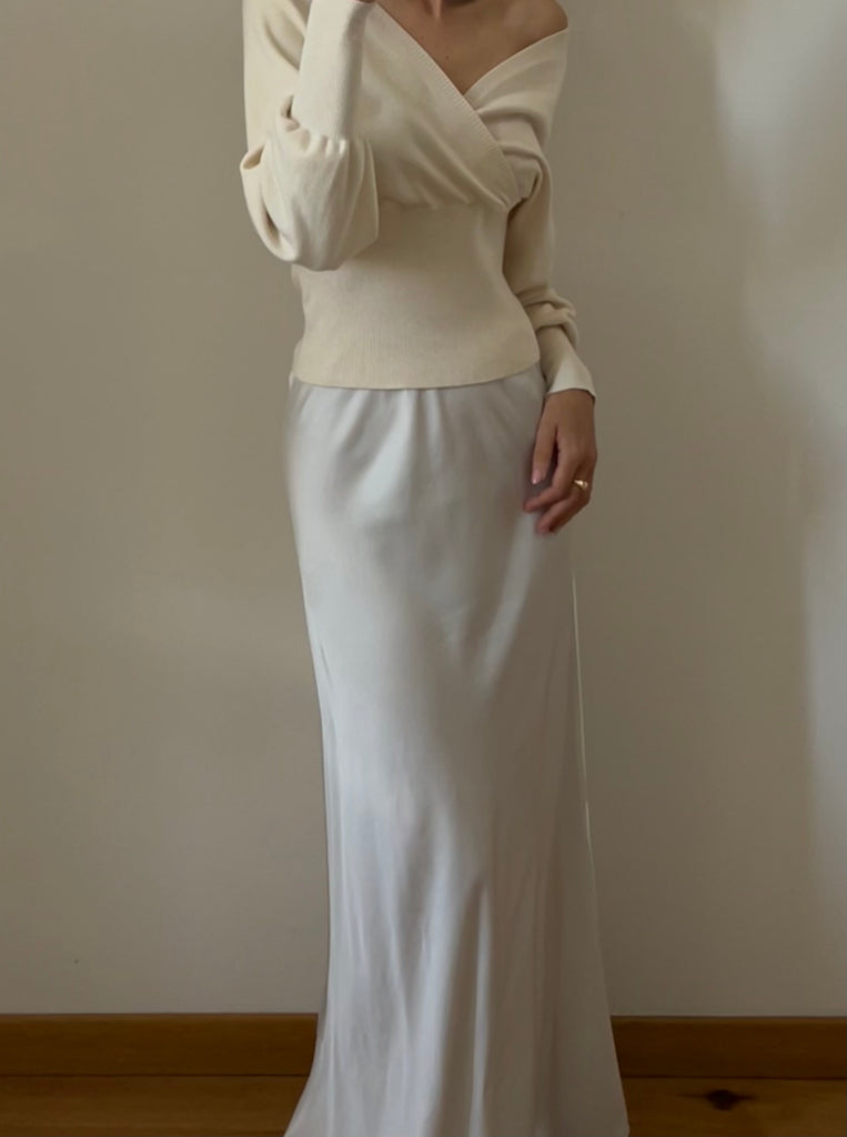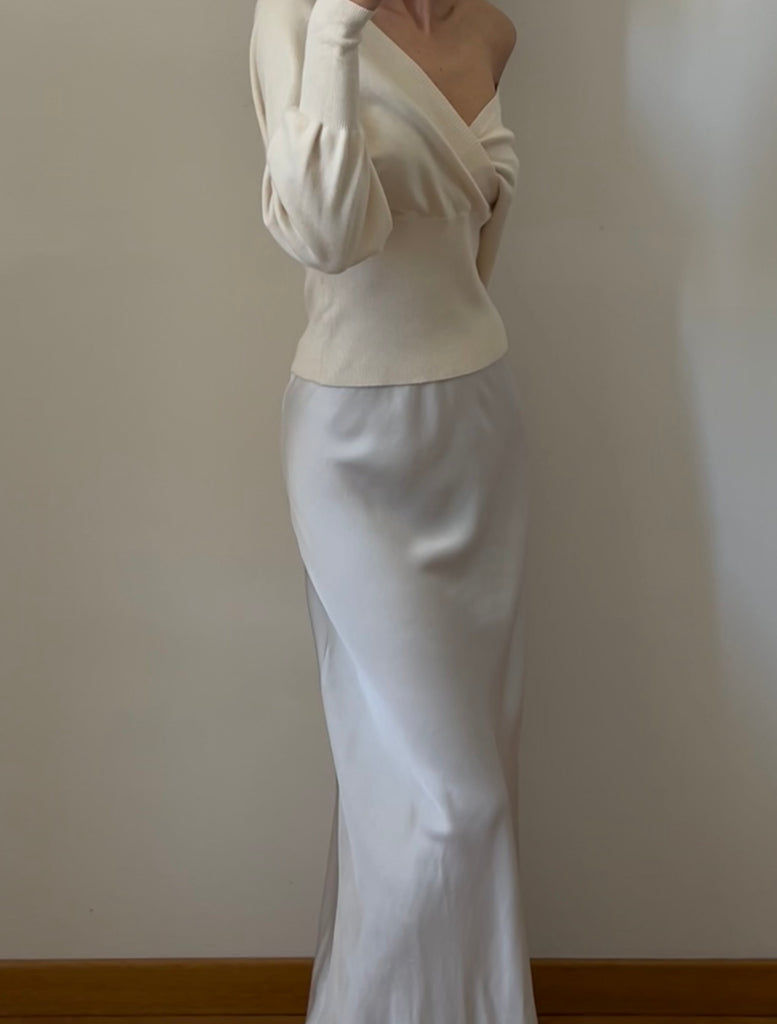 Gonna lunga modello scivolato in satin, con elastico (invisibile in vita)