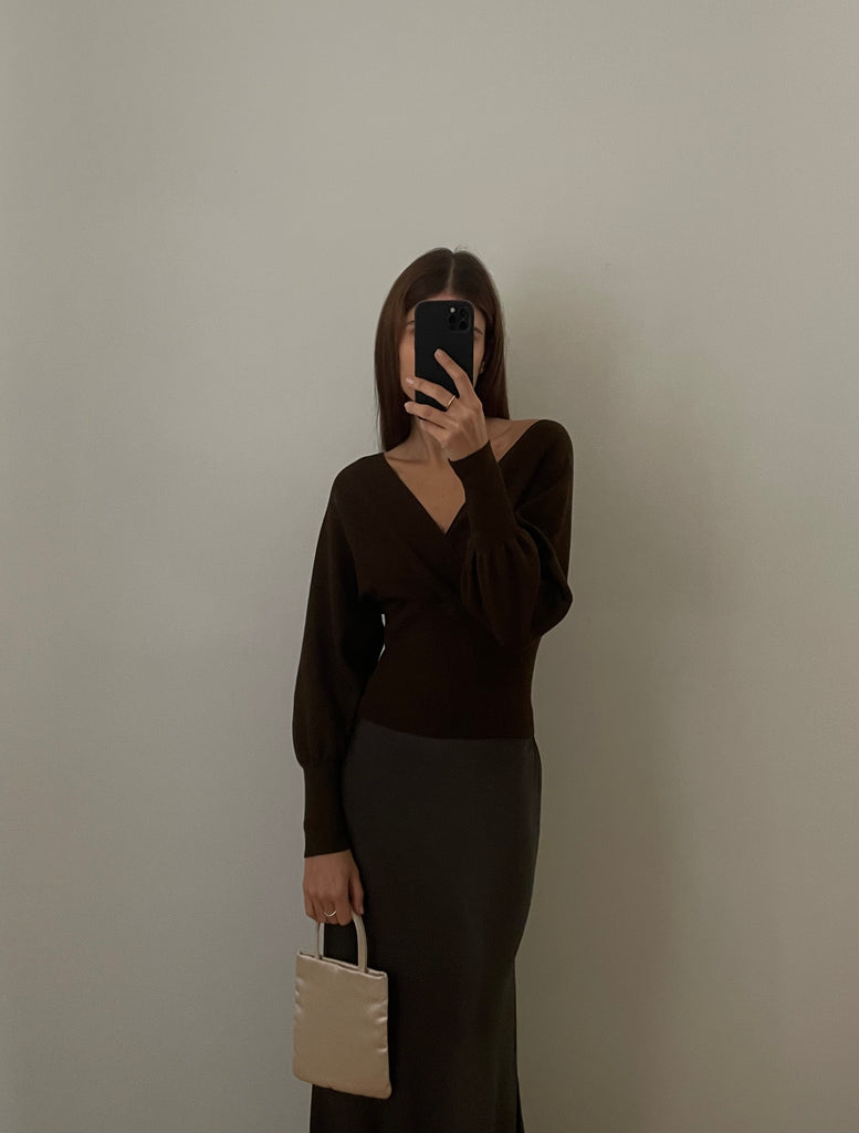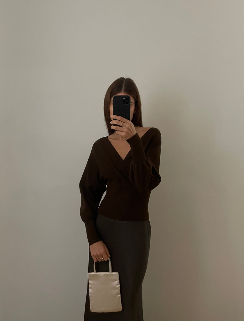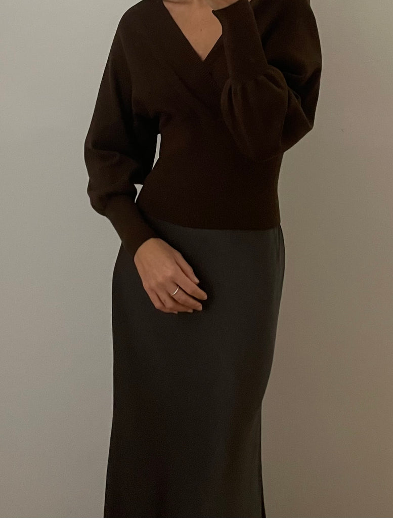 Pullover in maglia scollo a V sia sul davanti che sul dietro e maniche lunghe.
