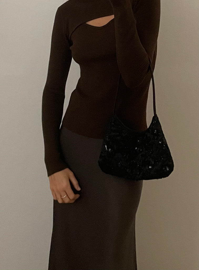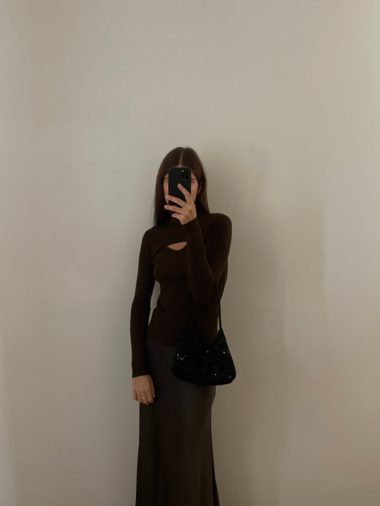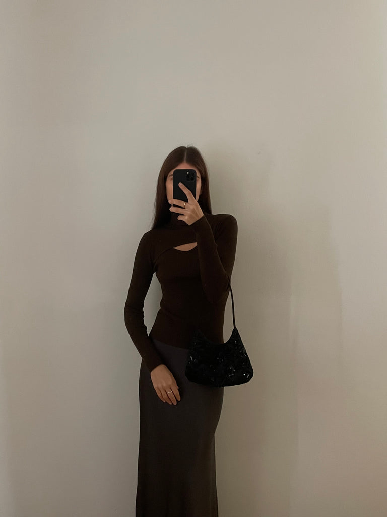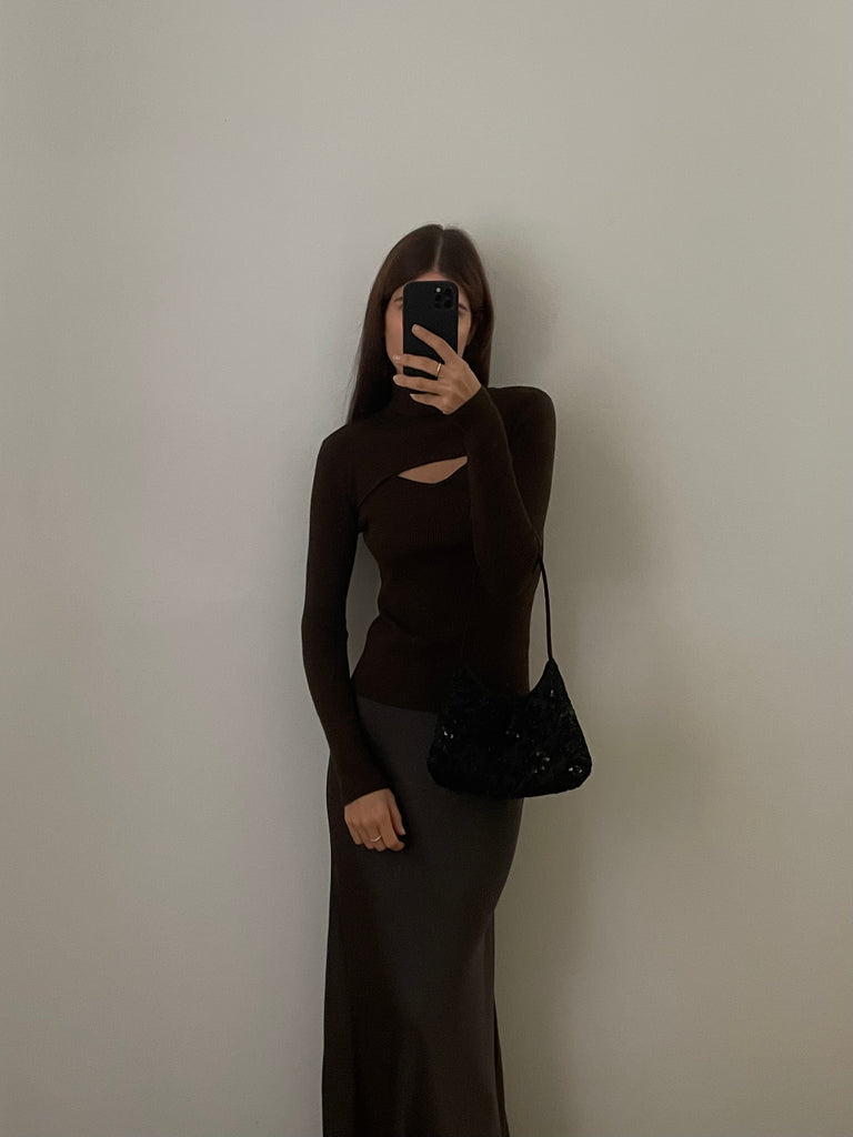 Pullover dolce vita in maglia a costine con scollo cut out al centro e maniche lunghe.