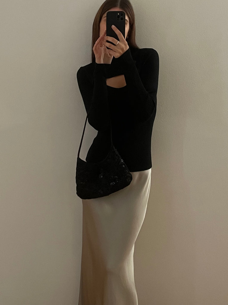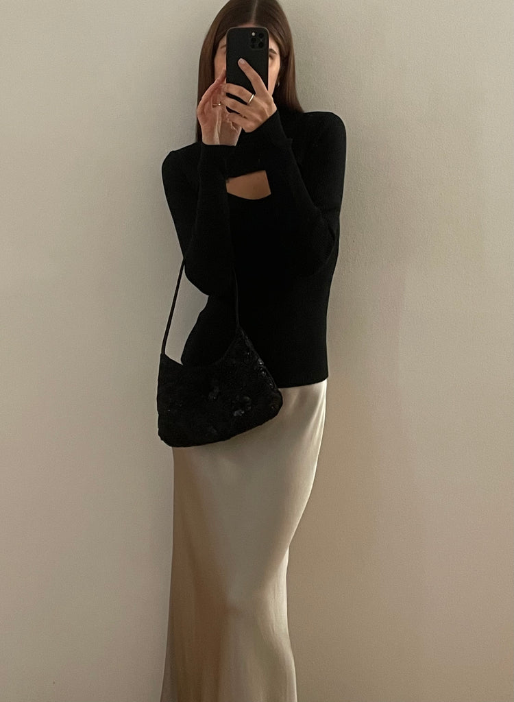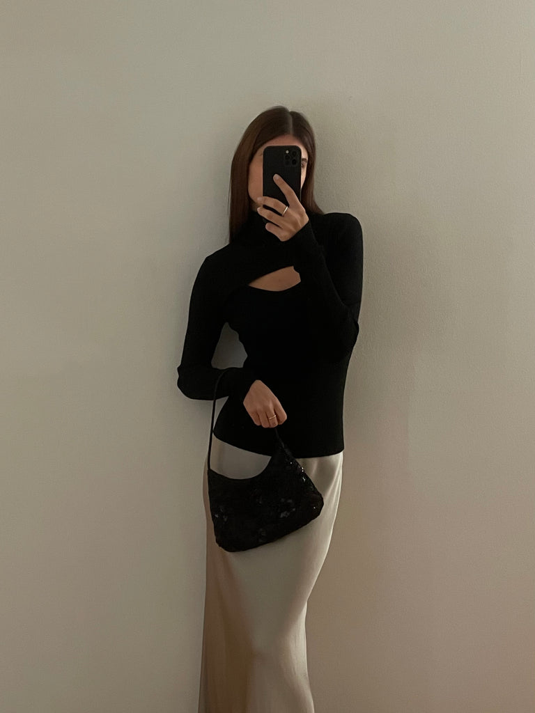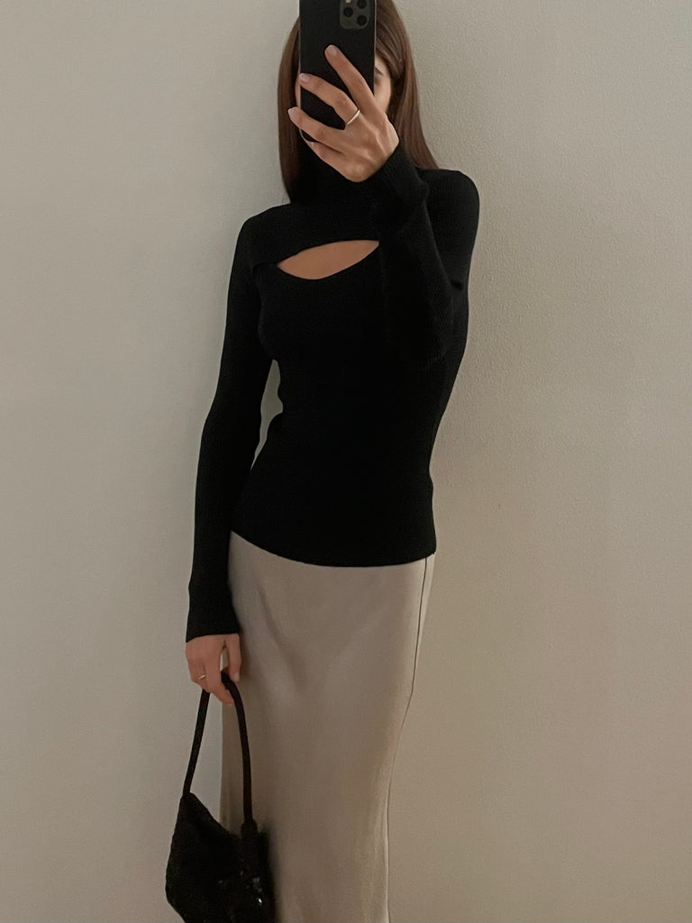 Pullover dolce vita in maglia a costine con scollo cut out al centro e maniche lunghe.