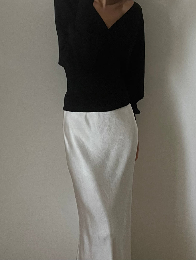 Manica raglan, morbida, che va a restringersi sul fondo.