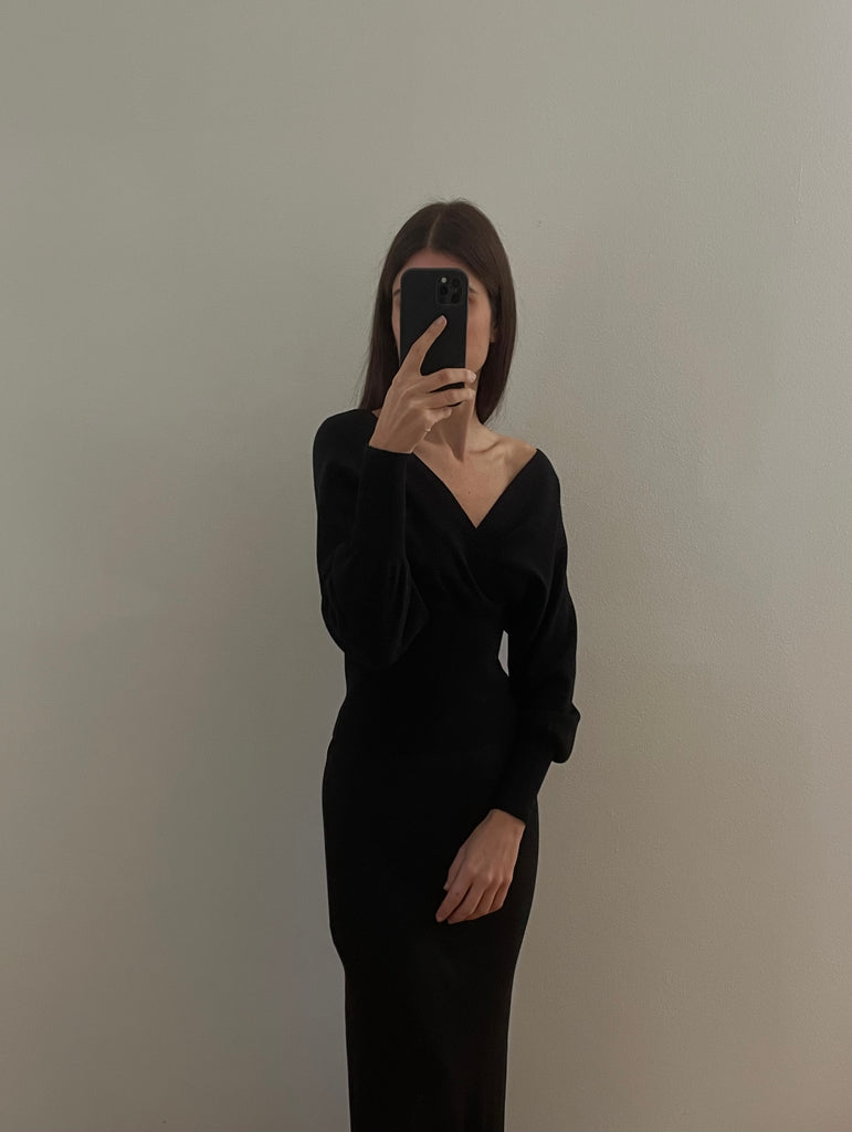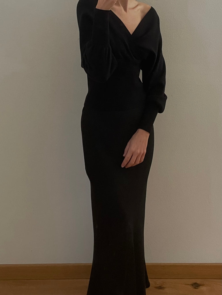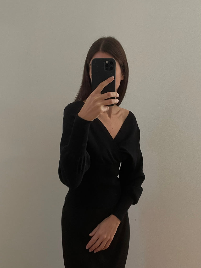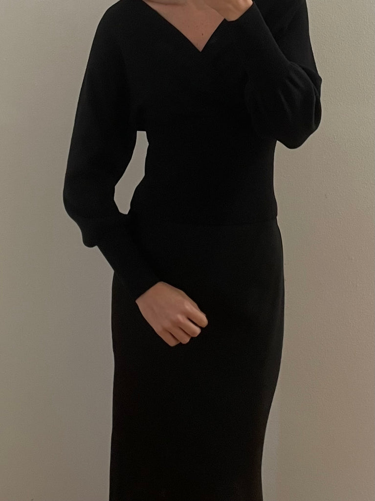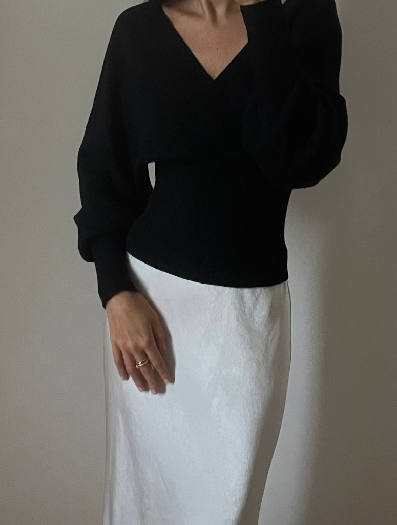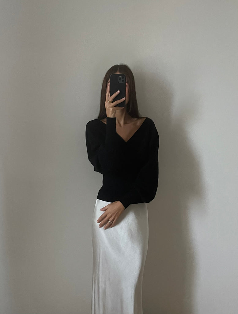Pullover in maglia scollo a V sia sul davanti che sul dietro e maniche lunghe.