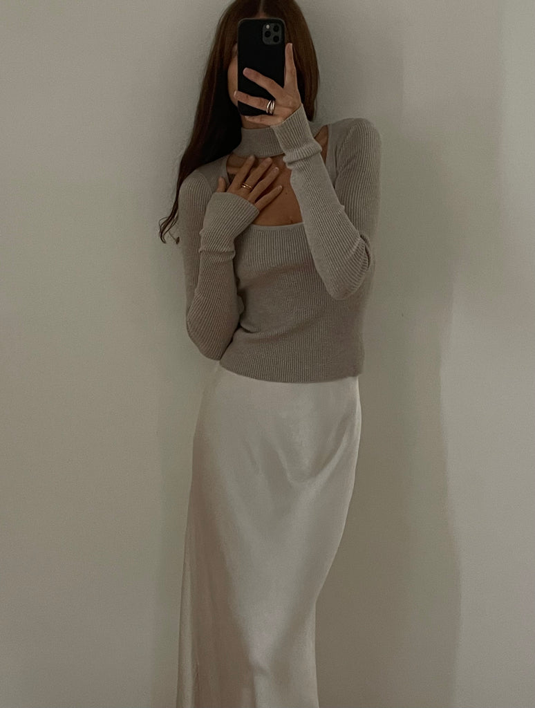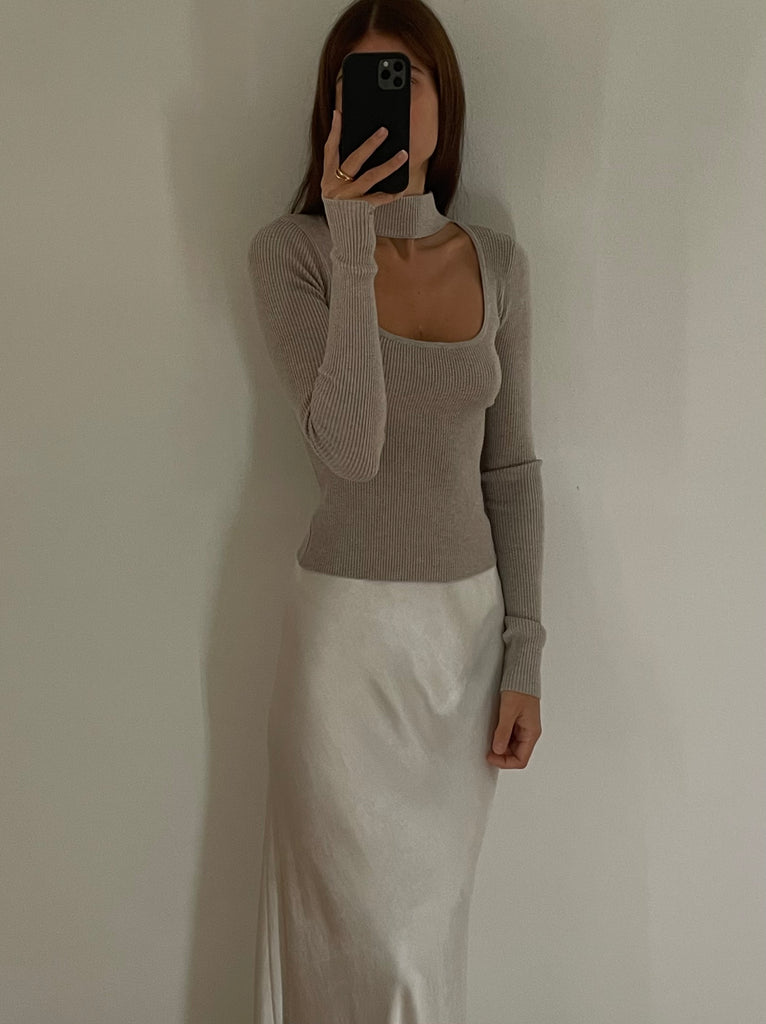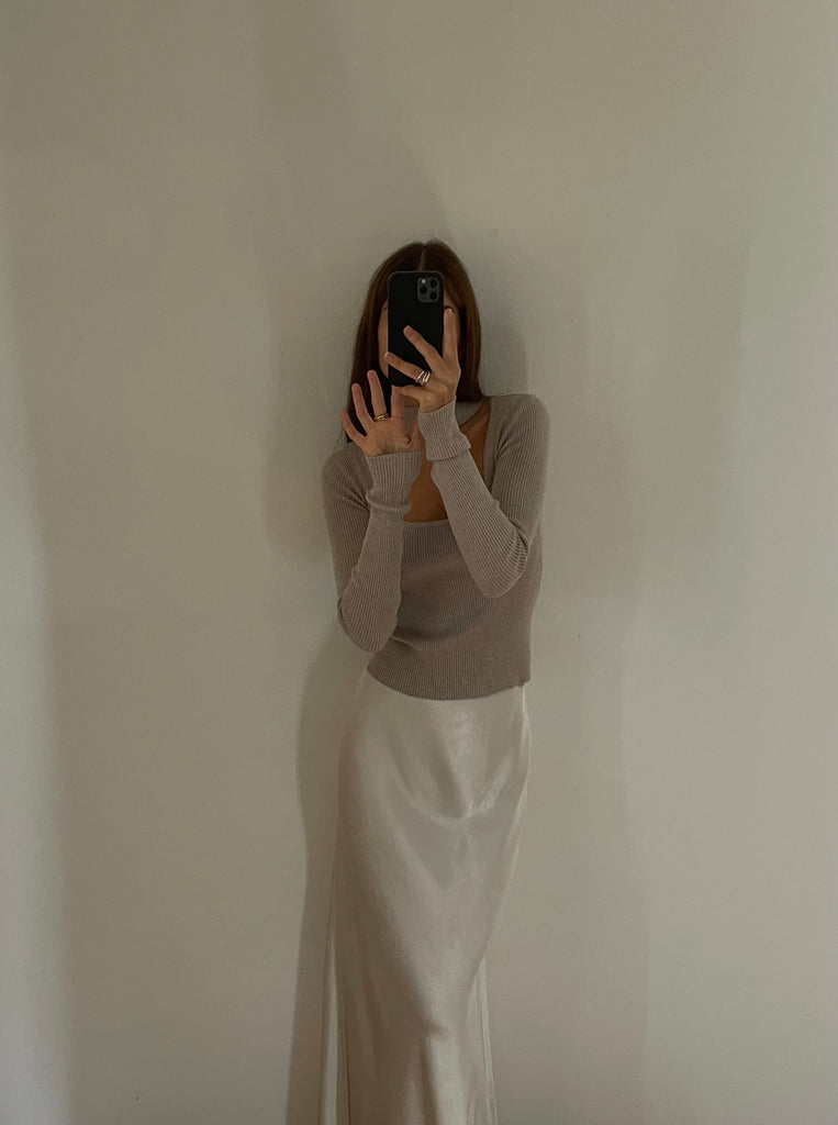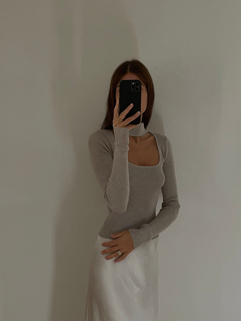 Pullover in maglia a costine con scollo squadrato e maniche lunghe.